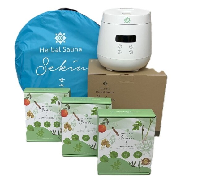 本商品は、折りたたみの専用テント、温度を自動で最適に保つ蒸気スチーマー、世希有オリジナルハーブ12袋をセットにしました!