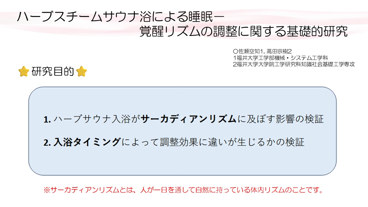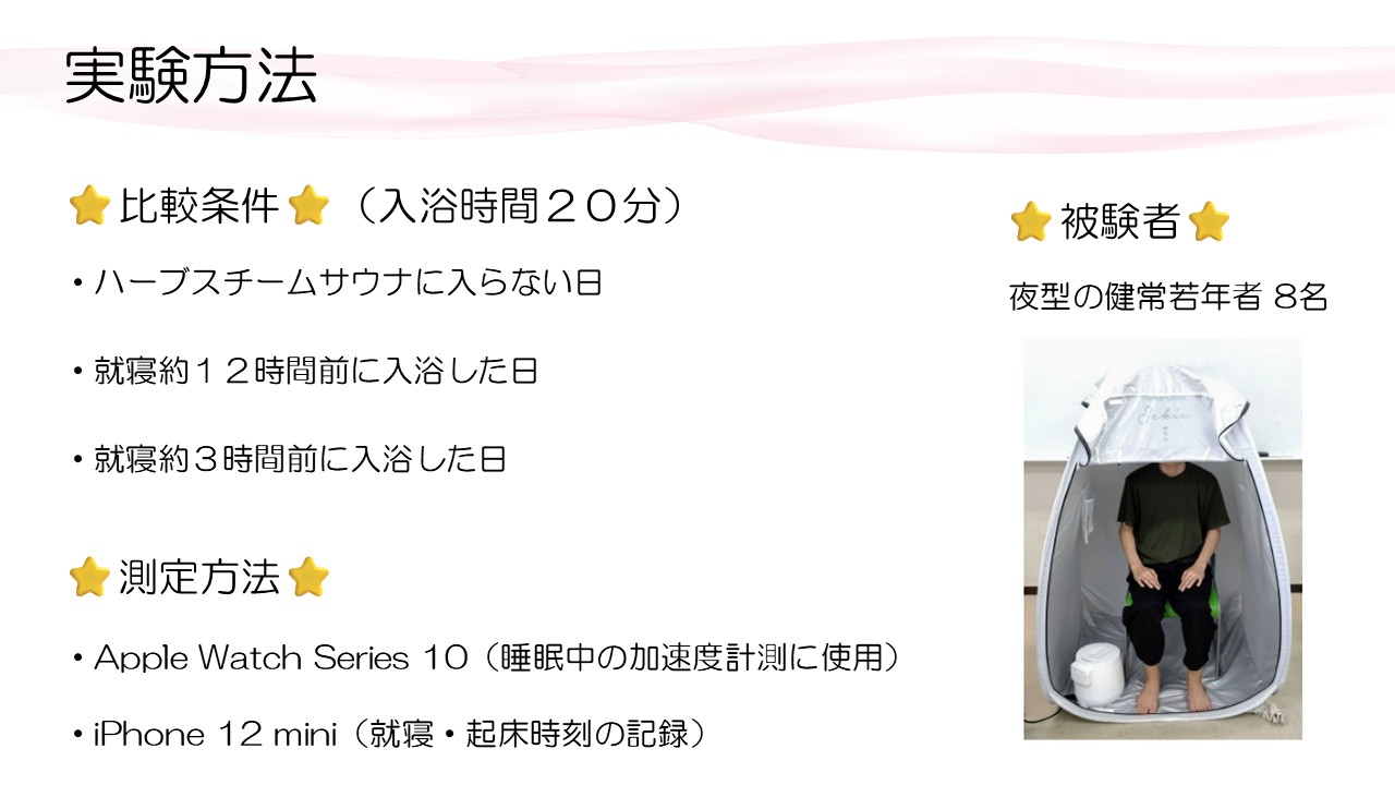 ハーブスチームサウナ浴による睡眠-覚醒リズムの調整に関する基礎的研究 2026.02.16 09:13 コメント(0) 研究資料 コメント コメントをする コメントはまだありません。 コメントする 名前 URL コメント